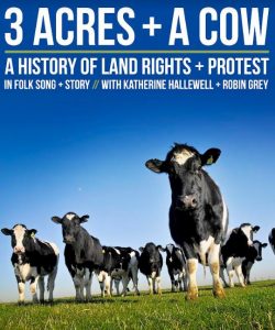 ‘Three Acres And A Cow’ is a history of land rights and protest in folk song and story. The show connects the Norman Conquest and Peasants’ Revolt with current issues like the housing crisis, reparations, climate breakdown and food sovereignty via the Enclosures, English Civil War, Irish Land League and Industrial Revolution, drawing a compelling narrative through the radical people’s history of England in folk song, stories and poems.