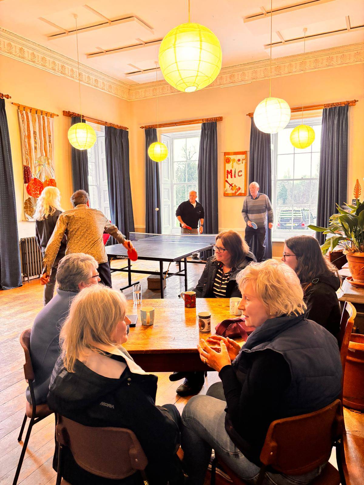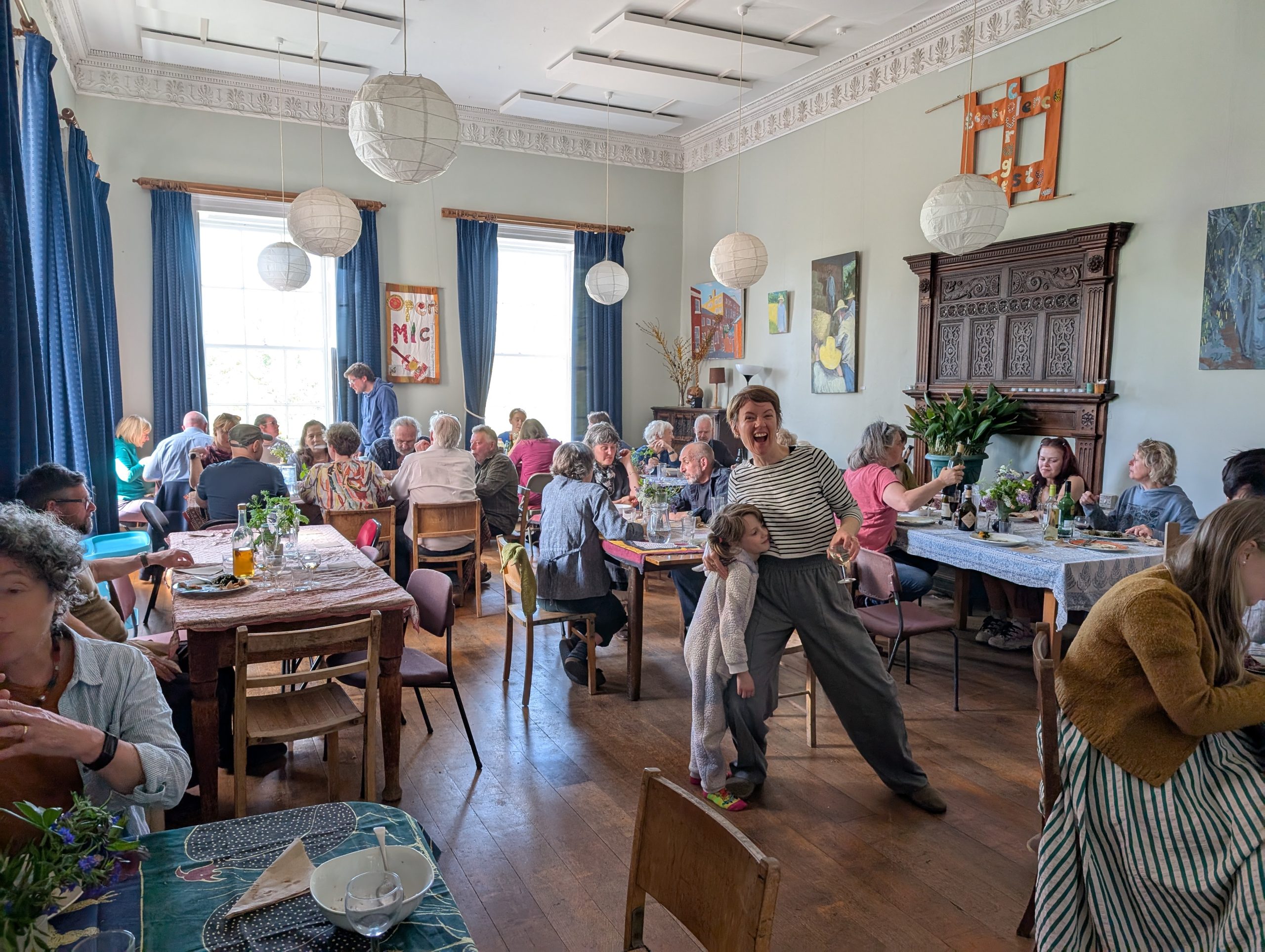 With its high acoustic-panelled ceiling and Georgian windows looking out onto the front lawn and lake, this light and airy room is suitable for all kinds of activities. It hosts open mics, dining, meetings, breakfast clubs, and all types of creative and social workshops and events. It has a wood burning stove and polished oak flooring. The windows have curtains and shutters that can be closed to exclude daylight. Ideal as a space for workshops and rehearsals, meetings, classes, exhibitions and dinners.